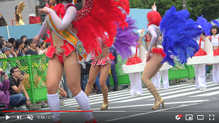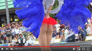 左のサンバ女子のうっすらと日焼け跡の残る尻がいいですね。